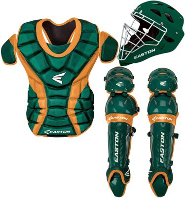 Easton Adult Force Custom Little League Catcher's Set Custom colors are here! This is the same gear worn at the 2012 Little League Baseball World Series. Helmet is translucent polycarbonate shell with exclusive VRS technology. Lightweight, long-lasting gel-injected pads reduce shock and vibration. Lightweight form-fitting chest protector provides protective foams for maximum protection. Triple kneecap leg guards have bent knee design for best fit and protection. Lightweight with removable and washable comfort liner. Meets NOCSAE standards. Adult Size: (Ages 16 and Above) Colors: Black/Burnt Orange, Navy/Cardinal, Dark Green/Burnt Orange, Dark Green/White, Black/GT Gold, Maroon/Gold, Black/Soul Blue, Dark Green/Gold, Black/Texas Orange, Navy/Columbia Blue, Navy/Red, Purple/Gold, Red/White.