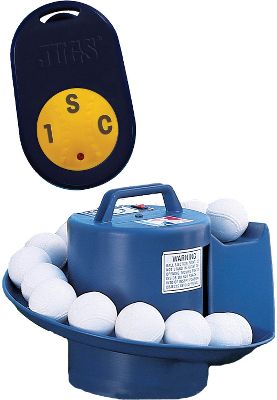 Jugs Sports Soft Toss Machine With Remote Control Jugs Sports Toss Machine with REMOTE CONTROL. Automatically tosses a ball every 5 seconds. You get hundreds of swings in less than 30 minutes. Holds 10 balls and weighs just 13 lbs. No electricity needed. Runs for up to 8 hours of continuous use and comes with an internal rechargeable battery (charger included). Includes a 24-page Toss Machine drill book.