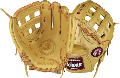 Nokona American Legend Series 11.75" Baseball Glove American Legend Series A full Sandstone glove, the American Legend is a stiff, sturdy, durable glove - a traditional Nokona. This glove is for the player looking for structure and durability, and allows for more custom break-in. The American Legend will maintain its shape over a long period of time, and provides exceptional durability. Glove Specifications Pattern: 11.75" Infield model. Web: H web. Back: Open Back Hand: $size$