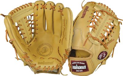 Nokona American Legend Series 12.75" Baseball Glove American Legend Series A full Sandstone glove, the American Legend is a stiff, sturdy, durable glove - a traditional Nokona. This glove is for the player looking for structure and durability, and allows for more custom break-in. The American Legend will maintain its shape over a long period of time, and provides exceptional durability. Glove Specifications Pattern: 12.75" Outfield model. Web: Modified Trap. Back: Open back. Hand: $size$.