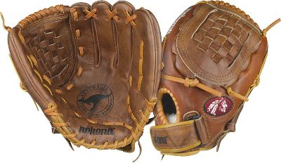 Nokona Buckaroo 12.5" Fastpitch Glove This glove combines Chocolate Kangaroo Leather on the back of the hand with sturdy Sandstone leather on the palm. Kangaroo leather is amazingly strong and lightweight, and Sandstone adds the body and form needed to maintain a solid pocket and overall fit. For players looking for a lightweight but firm glove, with a quicker break-in compared to traditional full cowhide gloves. Glove Specifications Pattern: 12.50" Fastpitch Glove Web: Basket Open: Closed with Closure Hand: $size$