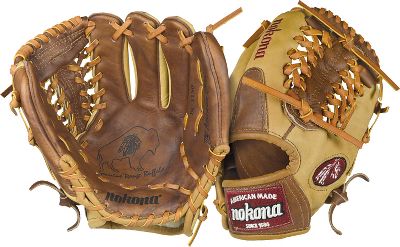 Nokona Buffalo Combo Series 11.5" Baseball Glove Buffalo Combo Series The Buffalo Combo is made with premium quality, select American Range Bison leather from ranches in South Dakota, combined with Nokonas signature Walnut Crunch leather that has been used for generations. This glove provides the best of both worlds, as it is both soft and sturdy and, easy to break in. A robust yet supple glove. Glove Specifications Pattern: 11.5" Pitcher/Infield model. Web: Modified Trap web. Back: Open back. Hand: $size$.