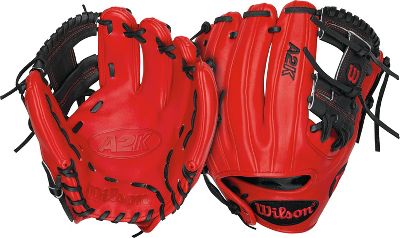 Wilson A2K Series Dustin Pedroia Game Model 11.5" Baseball Glove A2K Series New for 2014! The A2K is Wilsons most premium glove model. The top 5% of Pro Stock hides are triple sorted for consistency and fl awlessness, resulting in the softest and most durable leather Wilson has. All of the meticulously designed A2K features work together to provide the same core benefit, a truly long lasting glove that breaks in faster than ever. Dustin Pedroia model DP15 Glove Specification Pattern: 11.5" game model. Colors: Red/ Black. Web: H-web. Back: Open back. Hand: $size$.