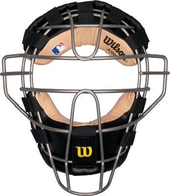 Wilson Titanium Umpire/Catcher's Mask The Wilson Titanium Umpire/Catchers Mask features a high-profile titanium cage with a sandblasted finish. The black polyurethane and tan leather padding gives form-fitting comfort. Weight: 624 g