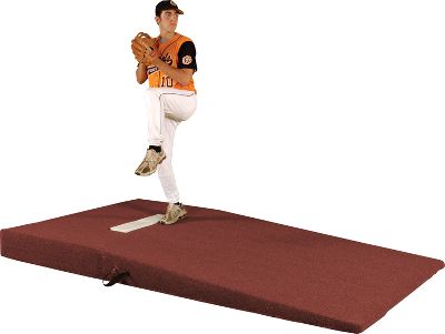 Proper Pitch Professional Clay Pitcher's Mound Regulation slope allows players to learn proper body mechanics. Designed for durability and portability. Light weight. Easily carried and stored Non-slip. Non-marking backing that will not damage or slip on gym floors. For indoors or outside use. Dimensions: 54W x 96L x 10H. Color: Clay.