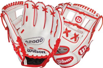 Wilson A2000 Limited Edition 11.5" Exclusive Baseball Glove A2000 Exclusive Series Baseball Express presents these limited edition, exclusive gloves from Wilson, the official ball glove of Major League Baseball. These Wilson A2000 gloves are one of a kind, so you won't find them anywhere else. We chose the best A2000 glove models from Wilson, in very unique color combinations so that you will standout on the field. We only made a few, so get your now! Glove Specifications Pattern: 11.5" Middle Infield model. Color: White/Red. Web: I-web. Back: Open back. Hand: $size$.