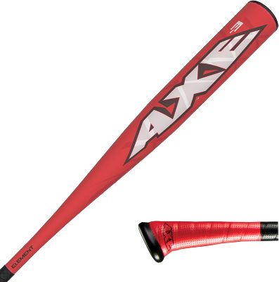 Axe 2013 Element -3 Adult Baseball Bat (BBCOR) Element Element carries the advanced LP Aluminum with an elongated barrel that delivers a larger sweet spot for hitters. LP2Scandium Alloy means bigger sweet spots, even better durability, and maximum legal performance. The Science Behind the AXE It's engineered to fit your hands. The oval contours of Baden's AXE handle and the angle of the base aligns with the natural angle of your hand. Less tension in your swing gives you greater energy transfer through the ball. The handle gives you a powerful contact position throughout your swing giving more consistent results. Bat Specifications Drop: -3 Adult Bat Barrel: 2 5/8" Certified: BBCOR Material: LP2Scandium Alloy Handle: 31/32" Construction: One-piece Alloy Flex: Regular Grip: Patented AXE Handle Available Sizes:$si