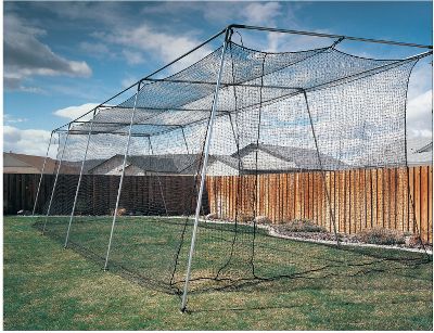ATEC's Backyard Batting Cage. Field grade quality at a backyard price! ATEC's Backyard Batting Cage is a functional design made of durable materials and is quick and easy set-up. It's great for indoor or outdoor use and is easily transported. Available in a 40' x 10' x 10' UV resistant net constructed of rugged nylon and trimmed with nylon rope for added strength. The installation kit includes corner supports, center pole supports, quick link connectors and rubber leg caps (for indoor use). Not included: 23 pieces of 10" x 1 3/8" 18 gauge tubing (40ft cage), which you can purchase at your local hardware store. This item drop-ships from the manufacturer and is not eligible for free shipping. Please allow 7-10 business days for delivery.