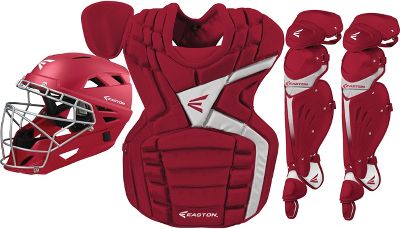 Easton Youth Custom Williamsport Mako Series Catcher's Set Limited Edition Colors as Seen in Williamsport, PA! Helmet has multi-layer tech foams designed for impact dispersion and comfortable fit. Steel facemask protects without limiting field vision. Chest protector has tight fitting four-way stretch material for unhindered movement. Leg guards have loose fitting design inspired by the asymmetry of the human body. Toe guards not available on youth or intermediate models. Additional toe guards available on adult leg guards only. Youth: Ages 9 - 12. Colors: $color$.