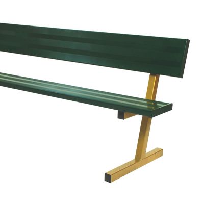 Jaypro 15' Permanent Bench With Back All seats and backs are 10" wide anodized aluminum planks with endcaps. Frames are 2 3/8" O.D. galvanized steel providing superior support to aluminum planks. Weight: 100 lbs.