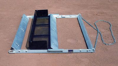 Diamond Sports Cut-N-Level Drag Diamonds Cut-N-Level drag is designed for grooming the surface of playing fields, featuring flat steel cutting blades and a screen for rock removal. The cutting blades are slotted and attached to the main frame with bolts, allowing the operator to adjust the blades for the desired depth of cut. Used in routine maintenance, the Cut-N-Level drag can be used for rock removal, smoothing and leveling the field as needed, saving the hundreds of man-hours normally needed to do these jobs. Frame and blades are galvanized Weight: 220 lbs