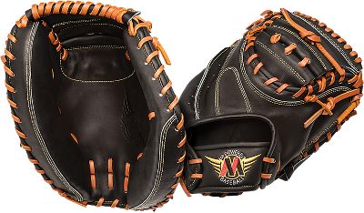 M^Powered Xcellsior Series 33.5" Baseball Catcher's Mitt Xcellsior Series XCELLSIOR series gloves are made from Steer hide, which is a super premium-level leather material that is the choice of a lot of elite travel ballers, high school prospects and professional players. Professionally tanned and more durable than other leather hides used to make high end baseball gloves. Because steer is tougher than cowhide, you should expect a somewhat longer break-in period. Once broken in, they hold their shape and last a long time and tend to really conform to your glove hand. Glove Specifications Pattern: 33.5" Catcher's Mitt. Web: Closed web. Back: Open back. Hand: $size$.