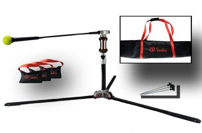 RBI Vortex Unit with Softball Hitstick The Vortex(tm) by RBI, SOFTBALL Swing Trainer comes straight out of the box ready for use. No assembly needed! Great for Baseball or Fast Pitch (Softball) hand-eye-coordination. Life time warranty on Aluminum frame and Die Cast parts!! Included in the Complete Unit: The Vortex(tm) by RBI Softball Swing Trainer. The Vortex(tm) "Hit-Stick"- (Softball). The Vortex(tm) Level 2 Speed bands (pack of 3). 3 Ground Stakes. 3 Dual Zippered Sand Bags (empty). The Vortex(tm) Carry Sleeve.