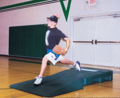 Trigon 2-Piece Indoor Baseball Mound Less than 50 pounds per section Two-piece design enables easy moving and storage Overlapping interlock design Cushioned landing reduces knee and ankle strain Will not damage or scratch gym floors Size: 13"H x 48"W x 56"L